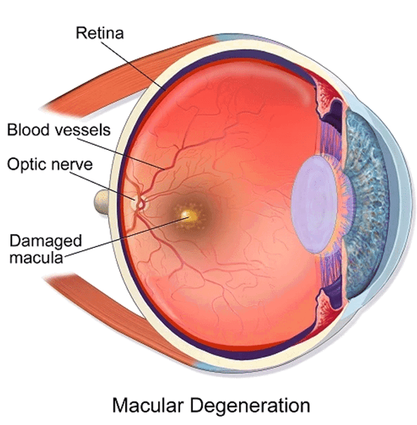 Macular degeneration is an age-related sight disorder which often appears gradually, but in some cases can have a very sudden onset. It is similar to and sometimes mistaken for glaucoma, where pressure in the eye leads to blindness. Both conditions are often noticed as a loss of central vision, or through the appearance of blurred or black spots in front of the eyes. There is no cure for macular degeneration and it often leads to total or near blindness, but vision can be maintained to some extent through special sight aids and the use of sight techniques.